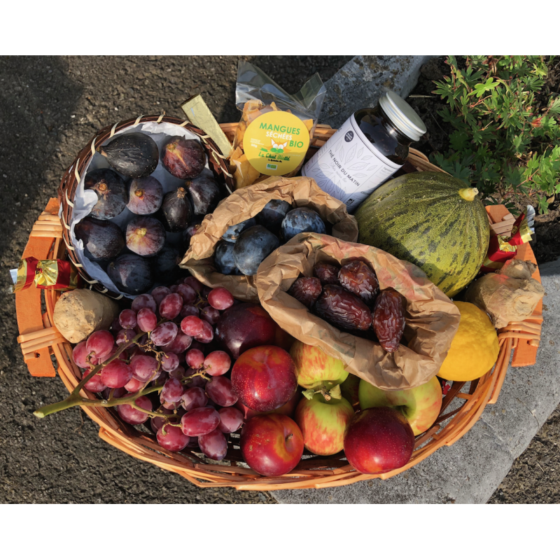 Nos paniers cadeaux se composent de fruits de saison, fruits secs, gourmandises (thés, tisanes, chocolats...). Ils varient en fonction des saisons et des arrivages.
